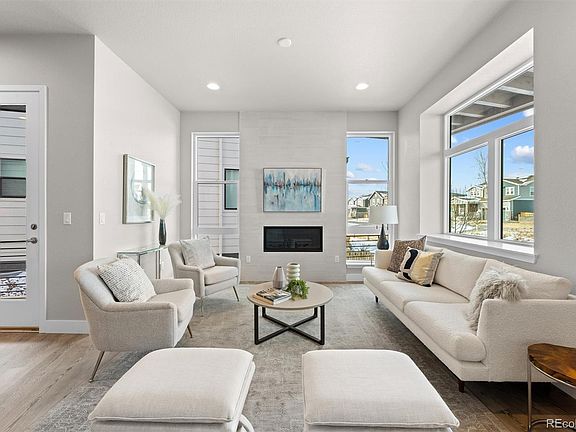 Don't miss out on this exceptional chance to own a stunning, modern home perfectly situated in the heart of Painted Prairie! If you've been seeking a hassle-free, low-maintenance residence, your search ends here. Upon entering this remarkable home, you'll immediately appreciate the soaring ceilings and exquisite designer touches that grace every corner. The family room offers a cozy ambiance with its gas fireplace adorned with floor-to-ceiling tile-the perfect spot for cherished evenings with family and friends. Adjacent to the family room, the kitchen truly fulfills every chef's dream, boasting stainless steel appliances, an abundance of cabinet space, and a spacious central island. The adjacent dining area completes this delightful culinary haven. Adding to the allure of this property is the oversized two-car garage, providing both convenience and ample storage. Venture upstairs and take note of the meticulously designed iron handrails leading to the 2nd floor. Here, you'll discover a generous loft space, two additional bedrooms, and the primary suite which features a fabulous north-facing deck, offering the perfect vantage point for enjoying picturesque sunsets. Ascend to the 3rd floor, where you'll find a generously sized game room complete with a wet bar & refrigerator. Step outside onto the stunning south-facing deck, which boasts breathtaking mountain views to the west. The unfinished basement houses the tankless water heater and furnace, and it's equipped with roughed-in plumbing, providing an opportunity to expand your living space with the addition of a bathroom. This gem of a home won't stay on the market long. Nestled in a tranquil courtyard between two quiet streets, it offers the perfect balance of privacy and accessibility to the new town center. View the walk through here: https://my.matterport.com/show/?m=dbwSxsLzd2T