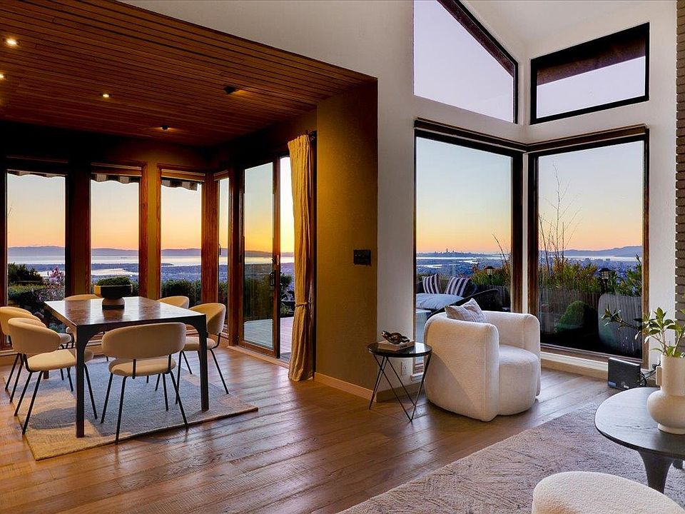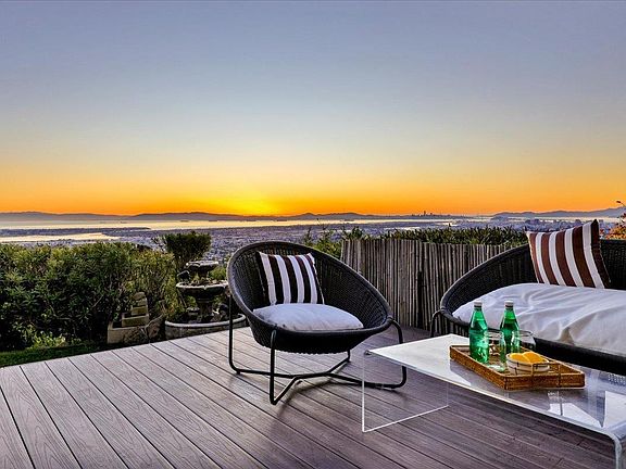 A true once-in-a-lifetime opportunity! This hillside villa in the prestigious Ridgemont community offers breathtaking panoramic views of San Francisco, the Golden Gate Bridge, and the Bay. Its the first full-view home in two years to hit the marketdont miss out! Designed for modern luxury, this home boasts high ceilings, an open layout, and expansive floor-to-ceiling windows that flood the space with natural light. The living and family rooms create a seamless indoor-outdoor flow, perfect for entertaining. The chefs kitchen, renovated in 2022, features Omega custom cabinetry, thick marble countertops, and high-end appliances. The primary suite offers unmatched views, a spa-like bathroom with a deep soaking tub, and a smart toilet. A redesigned guest suite downstairs adds flexibility. Enjoy a three-car garage, a landscaped front yard, and a low-maintenance artificial grass backyard. With OWN Tesla solar panels and 2 OWN Power wall batteries, this home is as efficient as it is beautiful. At sunset, relax on the balcony as the skyline glows golden, city lights twinkling against the Bays horizon. This isnt just a homeits a lifestyle in one of Oaklands safest, most scenic neighborhoods. Don't miss it rare opportunity to call this home as you own!