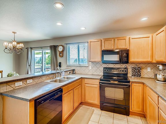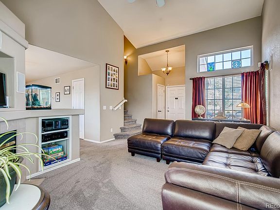 Great opportunity for a corner lot right across the street from Canyon Creek Elementary. This home is located in the Saddle Rock Ridge neighborhood and the Cherry Creek 5 school district. The main floor has an open floor plan, built in speakers and a fireplace. The back patio is TREX with stairs to take you to the walk out basement. Downstairs features a wet bar for all your entertaining needs.
