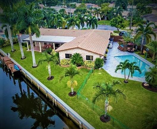 TRULY ONE OF A KIND!! 4/2 POOL HOME ON POINT LOT!! SPLIT FLOOR PLAN WITH ALMOST EVERYTHING UNDER WARRANTY!! NEW ROOF!, NEW A.C.!, NEW DIAMOND BRITE!, 200FT of WATERFRONT, STEAM SHOWER & JACUZZI TUB IN MASTER BATHROOM!. CLASSIC CHICAGO BRICK SURROUNDS THE HOME, LUSH TROPICAL LANDSCAPING, UPGRADED SPRINKLER SYSTEM AND SECURITY SYSTEM WITH EIGHT CAMERAS AND SECURITY LIGHTS ALL AROUND PROPERTY, GORGEOUS OUTSIDE PATIO WITH OVERSIZED POOL WITH SEPARATE ENCLOSED SHOWER, 4 PERSON JACUZZI HOUSED INSIDE BEAUTIFULLY DECORATED