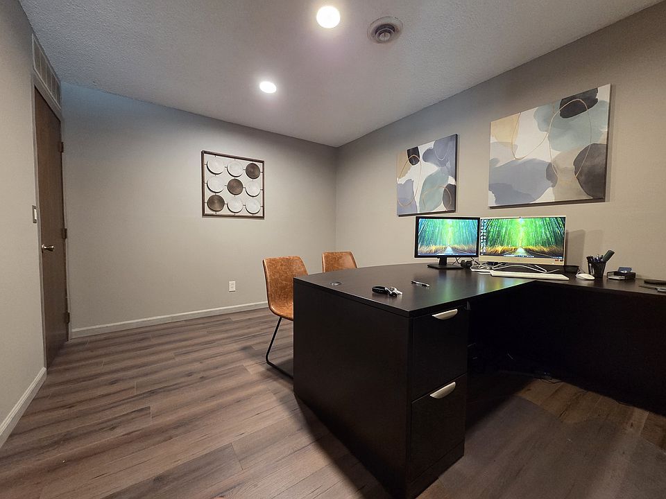 Office space for Rent 2 to 4 units available. Stylish and move-in ready commercial office space ideal for a variety of professional uses. This well-maintained unit offers flexibility with two leasing options: rent the entire space for $1,600/month, or individual private offices for $500/month each. The layout includes a welcoming reception area with a secretary desk, a coffee bar, and multiple private office suites. End units feature exterior doors and large windows that provide excellent natural light throughout the day. Recent updates include: Fresh interior paint, Updated flooring throughout, Remodeled bathroom, Newer windows, Roof less than 5 years old. 1 year lease agreement. First and last months' rent for security deposit.