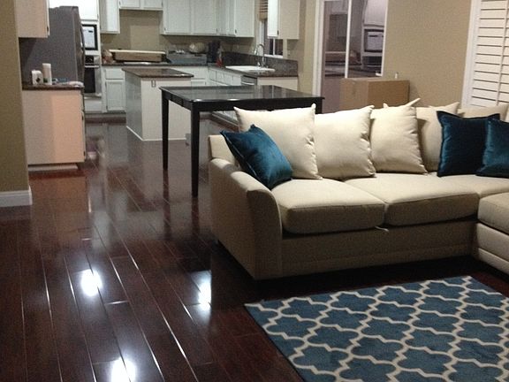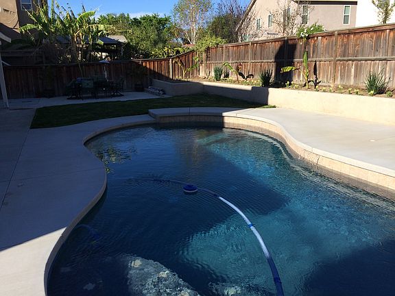 Two story home with 4 bedrooms, 3 bathrooms and 3-car garage. Laminate floors. Living room entry with fireplace and entertainment niche, loft and built-in office desk in hallway. New large family kitchen with quarts counter tops, island, butlers pantry, in-kitchen dining area and formal dining room. Master bedroom with walk-in closet and master bathroom with his and her sinks and separate soaking tub. Large rear yard with pool and BBQ area and patio cover. New Solar panels. New exterior paint