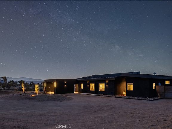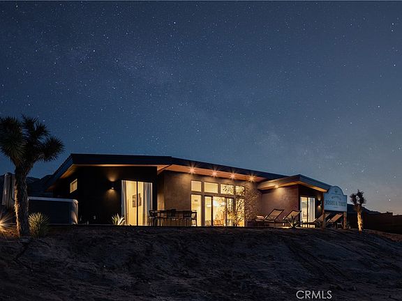 Introducing an unparalleled desert sanctuary – a Joshua Tree masterpiece offering luxury living on a grand scale. Nestled on a sprawling 2.28-acre double lot, this new construction home spans 1295 sqft, boasting 2 bedrooms, 2 bathrooms, and an array of lavish amenities designed for the ultimate desert lifestyle experience. Crafted with meticulous attention to detail and built to the highest standards, this home exudes sophistication and elegance at every turn. Step inside to discover a fully custom kitchen adorned with exquisite baltic birch cabinets and porcelain countertops, providing ample storage and a stunning focal point for culinary endeavors. The open floor plan, with soaring ceilings and a sliding door that seamlessly connects the indoor living space to the backyard oasis, creates an inviting atmosphere bathed in natural light and framed by panoramic mountain views. The thoughtful layout places the kitchen and living area at the heart of the home, with bedrooms positioned on each side for optimal privacy and comfort. Designed for entertaining and relaxation, the backyard is a private sanctuary fenced off for seclusion, featuring a sparkling pool with smart technology, a rejuvenating spa, a fire pit for cozy gatherings, a convenient outdoor shower, a BBQ area, and a captivating 4-person hammock circle – the perfect spot for stargazing under the desert sky. No detail has been spared in this luxury retreat, with integrated indoor and outdoor Sonos speaker system, 4K TVs, and fully-paid solar panels ensuring convenience and sustainability. Every element of this home, from the meticulously curated furniture to the designer fixtures and finishes, reflects a commitment to quality and style. Located just moments from hiking trails, the National Park entrance, and the vibrant Village with its array of restaurants, shops, and bars, this turnkey residence offers the ultimate combination of convenience and tranquility. Live in style, luxury, and peace at this Joshua Tree masterpiece – where every day feels like a desert dream come true.