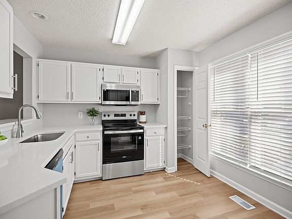 Charming brick townhome in nature lover's Brittany Woods - convenient location minutes to N Raleigh dining & shopping - just a hop over to 70/I40. Roof 2025 and HVAC 2019 - HOA maintains exterior - enjoy low maintenance living! Brand new LVP floors throughout main living area. Kitchen features quartz counters, new SS range/dishwasher/microwave. Two large bedrooms upstairs, each with their own en-suite bath full bath. Third floor flex room would make a great office, workout room, or library! Wooded buffer in back of home.