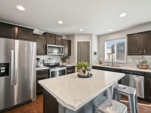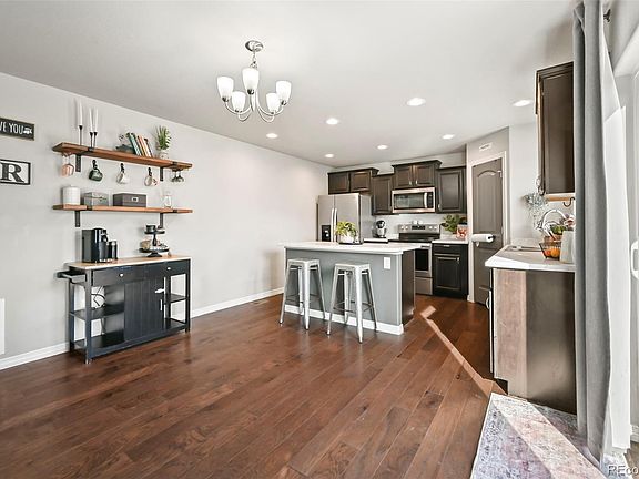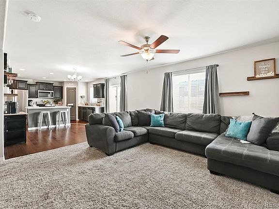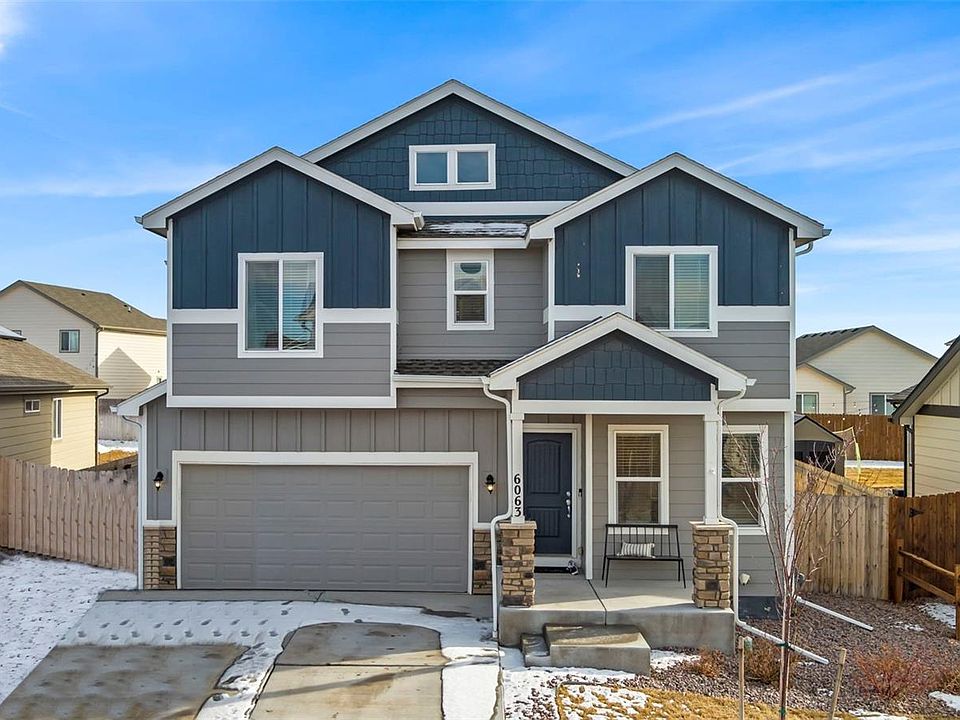 Welcome to your dream home! This newer, contemporary residence boasts convenience and comfort, perfectly nestled within walking distance to a K-8 school. With 4 bedrooms, 3 bathrooms, an office and a 2-car garage, this home offers ample space for all your needs. Upon entering, you'll be greeted by the bright and airy atmosphere accentuated by vaulted ceilings in the master bedroom, creating an inviting retreat. The attached 5-piece master bathroom adds a touch of luxury, providing a serene oasis for relaxation. The heart of the home lies in the modern kitchen, complete with stainless steel appliances, a convenient kitchen island, pantry, and ample cabinetry. Whether you're preparing meals or entertaining guests, this space is sure to inspire culinary creativity. Step outside and you’ll find a fenced rear yard equipped with an automatic sprinkler system & convenient cement patio perfect for relaxing during those beautiful Colorado evenings. Additional features include an upper level laundry room, air conditioning, water softener and an unfinished basement awaiting your personal touch, offering endless possibilities for customization and expansion. Conveniently located in close proximity to military bases, commuting is a breeze, allowing you to spend more time enjoying the comforts of home. Don't miss the opportunity to make this exceptional property your own – schedule a viewing today!