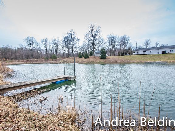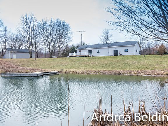 Spectacular Setting awaits you surrounding this meticulously maintained 3 bedroom, 2 bath ranch. Master with walk in shower. Every detail has been thought of here! Spacious floor plan with ease of access to outdoor guests, great storage in the over sized basement crawl space. Ease of access to have parties in the garage with built in kitchenette area and wall unit for heat, glass slider to your waterfront backyard here as well as off your dining space to a huge back deck that is wired for a hottub! Spring fed nothing short of stunning pond with 2 docks and fish, as well as the creek meandering through! This is true country paradise! 36X30 Pole barn with heat and electric service & attached lean to for storage of all of your outdoor toys! All of this with all the appliances & a HOME WARRANTY Included!