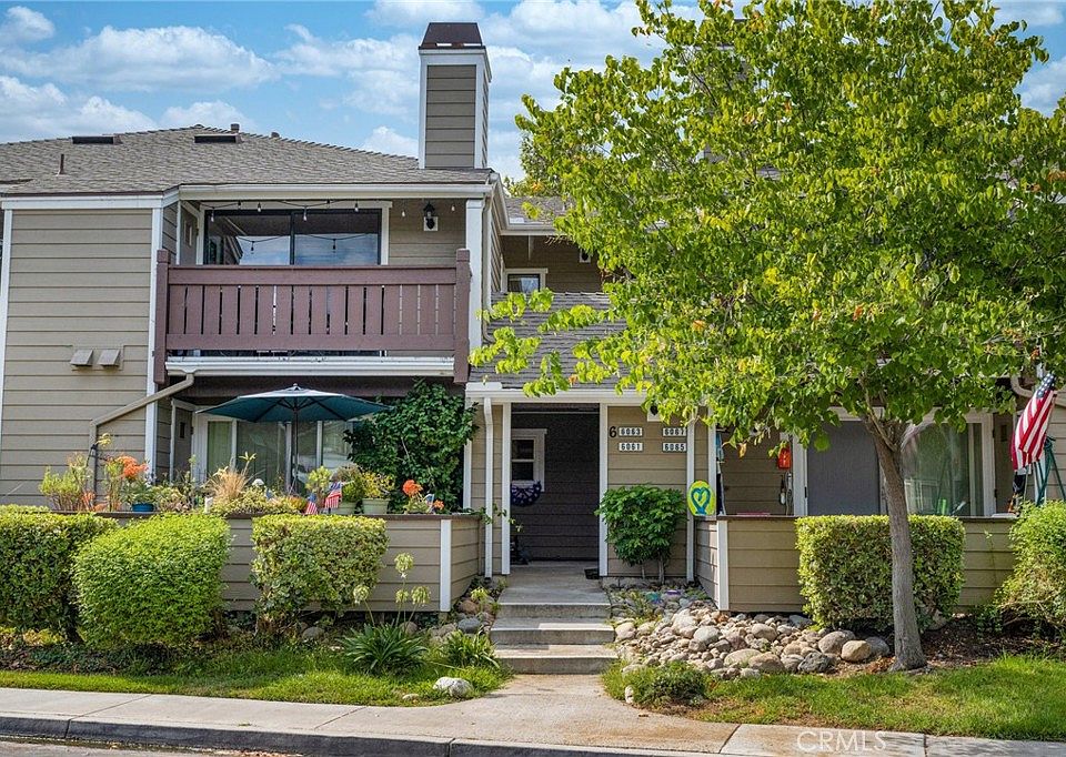 Imagine coming home to this modern and open 2BD/2BA, 2nd story, single-level condo in Kellogg Terrace with thoughtful upgrades. Efficient kitchen has elegant marble countertops illuminated by stylish pendant lighting, white cabinets, stainless steel appliances, and laminate wood flooring. Bathrooms feature granite countertops and tile floors. In Aug 2023, the entire unit was freshly painted, new carpet installed in living room and bedrooms, and new sink and cabinet fixtures replaced in all bathrooms. Storage abounds in this home: walk-in closets in both bedrooms, bonus hall closet plus tall cabinet in primary bathroom not typical in standard units, kitchen pantry, and balcony laundry room spacious enough to accommodate washer and dryer with extra shelving. Paneled doors, smooth ceilings, LED recessed lighting, ceiling fans, and crown molding throughout add that extra touch of sophistication and ambiance. Enjoy serene evenings on your own private balcony adorned with string lights, creating a cozy and intimate setting. Home is equipped with modern Smart features, including a Google Nest thermostat and a Smart Lock on front door. Water Heater was recently installed Oct 2022 and AC unit in 2016. Water Softener included. View from second bedroom and left side of balcony overlooks shade trees, expansive grassy area, and community pool/spa. HOA has updated the siding throughout the complex over the past few years; trash is included in monthly fee. Assigned parking space is close by with plenty of guest parking. Kellogg Terrace offers a unique building configuration that positions every unit in a desirable corner location. With El Cajon Trail a short stroll north, Imperial Highway to the south, and single-family residences surrounding the greater perimeter, living in Kellogg Terrace is both pleasant and convenient. Quick and easy access to freeways, restaurants, retail shops, and movie theater. Located in the esteemed Placentia/Yorba Linda school district, it is a short walk to Esperanza High school. FHA/VA approved complex. You can see this property checks many boxes and is move-in ready. Don’t delay in making this lovely condo your new home…come check it out for yourself!