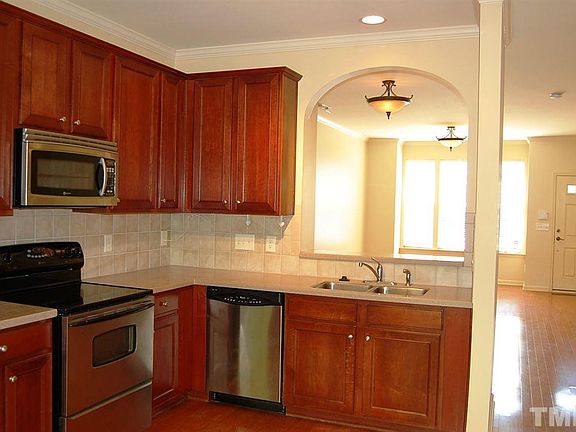 Move-in ready TH in popular Glenwood North; Lots of room to spread out; Spacious living room and dining room; Hardwoods on main floor; Kitchen w/ SS appliances and solid surface counters; New carpet upstairs; Master w/ vaulted ceiling; Huge lower level family room with full bath and fireplace could 3rd BR; New HVAC, paint, carpet. Deck and patio overlook private wooded back yard; Large community pool; Close to shopping, movies, restaurants, 440, 540, RTP and airport.