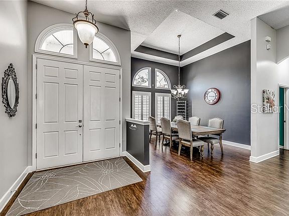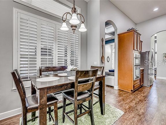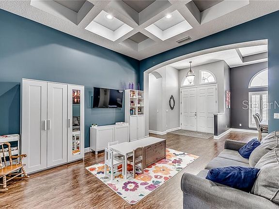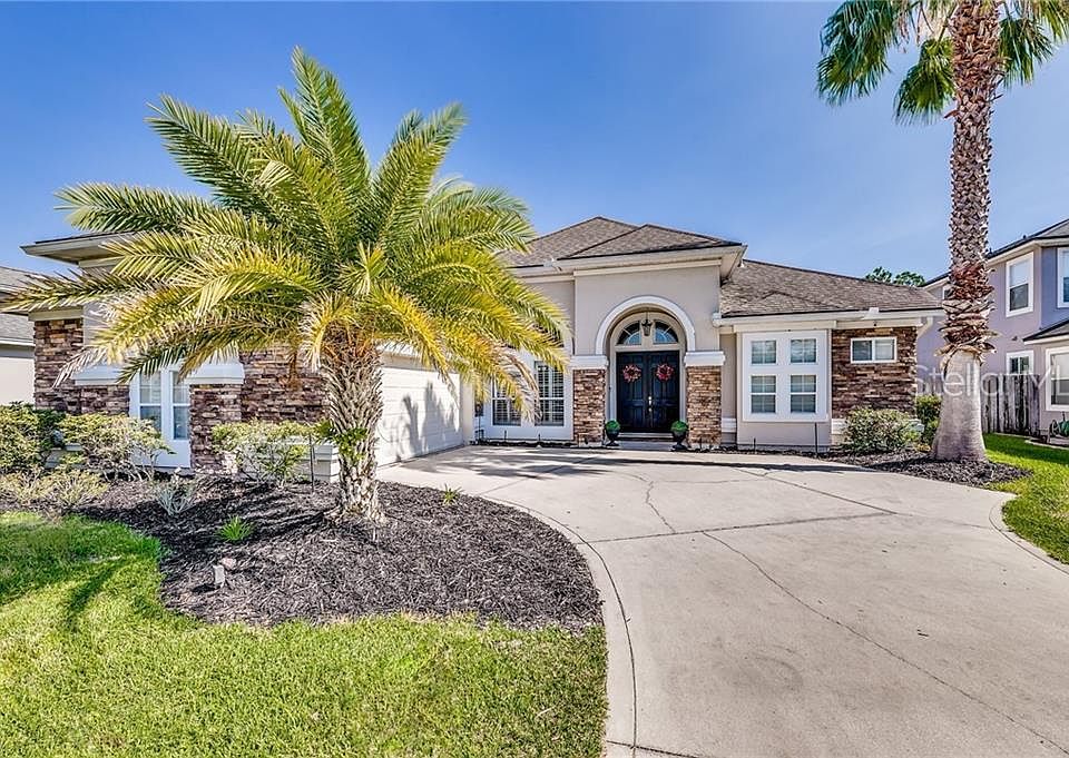 BACK ON THE MARKET! Call today to set up your showing! This home is move-in ready! Pride of ownership shines in this beautifully maintained home in Bartram Springs. Luxury vinyl plank flooring and high tray/coffered ceilings greet you as you enter through the french doors. The split floor plan is the perfect set up! Steal away to the master suite, with brand new carpet and plenty of space to relax. Master bath comes complete with water closet, stand-up shower, garden tub, and walk-in closet. The gourmet kitchen boasts stainless steel appliances, gas range, center island, and beautiful 42" cabinets. With a breakfast bar and eat-in area, this is a prime spot for gathering. Built-in features, plantation shutters, and gas fireplace bring the living area to life. Two bedrooms share a jack-n-jill bath, while the 4th bedroom and additional bathroom prove ideal for guests or bonus space. Separate laundry room is a plus! Lanai was recently screened and brand new pavers were added for additional outdoor entertainment space. Bartram Springs community amenities include pools, playground, splash pad, basketball court, and fitness center.