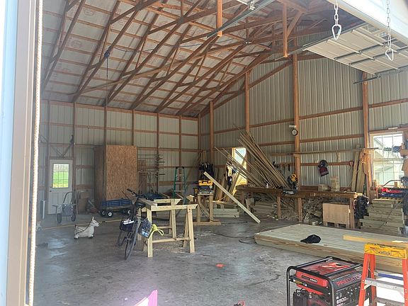 Great property. Living quarters is nice with oak cabinets and trim all around. Wood stove heat but doesn't take much to heat. Storage over top with sissor trusses for adding an upstrairs or you could finish the rest of the building it's a 40x60 building with 2 large garage doors and front porch. Another 60x80 building with concrete floors. 30x40 pole barn. Car port. And storage building all fenced