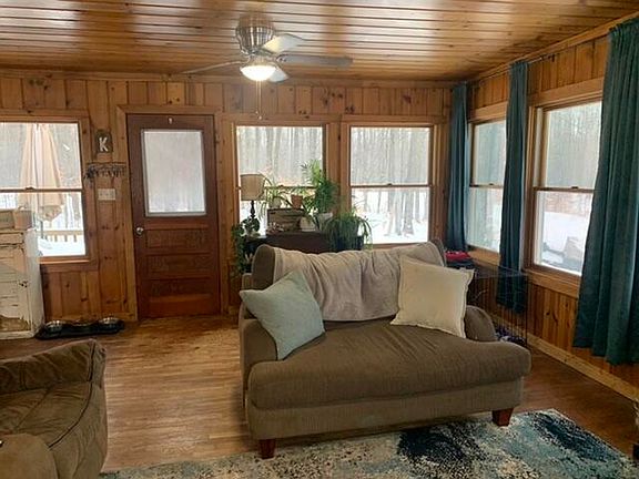 2ND CHANCE! BACK ON MARKET AFTER BUYER FINANCING FELL THRU - Country comfort, tucked into a hill for convenient walkout access on the lower level, and among-the-treetop views on the upper level. Knotty pine and hardwood floors mix with modern fixtures for an eclectic finish. Master suite and living space upstairs, with large mudroom, laundry, 3 additional bedrooms (one non-conforming) and full bath downstairs. High-efficiency furnace (2017) and central air conditioning provide four-season comfort. Metal roof. Charter high speed internet is being installed. Snowmobile trailhead within 2 miles, with acres of state land beyond.
