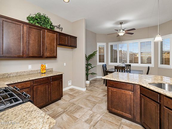 - Ceiling Fan(s), Solid Surface Counters, Eat-in Kitchen, Granite Counters, Kit/Din Combo, Liv/Din Combo, Live on One Level, Master On Main, Raised Ceilings 9+ft, See Remarks
