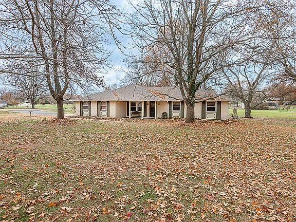 Amazing location and easy access make this home located just east of Springfield special. Located in Harmony Heights subdivision, and sitting on approximately 2.24 acres, this freshely painted 1600 sq.ft. home has an inviting covered front porch leading into a 3 bedrooms, 2 full bath home built in 1972. The home has been updated over the years with newer roofing, well, and septic system the most recent updates. The floorplan is roomy, with 2 lving areas, a large kitchen and dining area, and even a nice covered porch overlooking a fenced yard. The kitchen is open to the living room and has loads of cabinet space , a full pantry, and stainless steel appliances as well. The brick fireplace has been converted to gas with a wall furnace installed. All the bedrooms are roomy and the master bath has a walk-in shower and closet. The yard has great mature trees and sits on the corner with a side entry garage. The workshop sits on the west side of the property. The neighborhood is established with great neighbors that have lived in the area for years. Easy access to Rogersville to the east and Springfield to the west. A rarely found home on acreage close to Springfield with popular Rogersville schools.