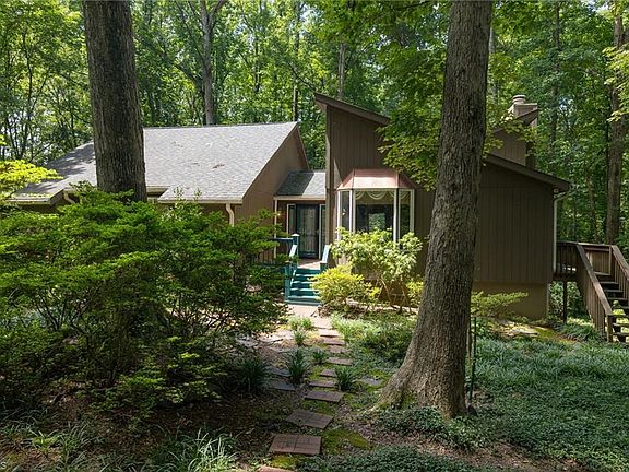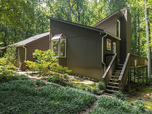 Contemporary home nestled in a serene natural wooded lot. This stunning property features 4 spacious bedrooms and 2 full bathrooms. Hardwood floors throughout primary living areas. Living room with vaulted ceiling and stone fireplace. Dining room with bay window overlooking the front yard. Kitchen with granite counters and tile backsplash. Primary bedroom with en-suite which features a jetted tub and separate shower. 2nd and 3rd bedrooms on the main level. 4th bedroom or bonus on the second level. The huge deck is accessible from multiple locations and overlooks lush natural vegetation, a true outdoor oasis. Future expansion is possible in the unfinished portion of the basement. 2 car basement garage. Home is being sold As-Is.