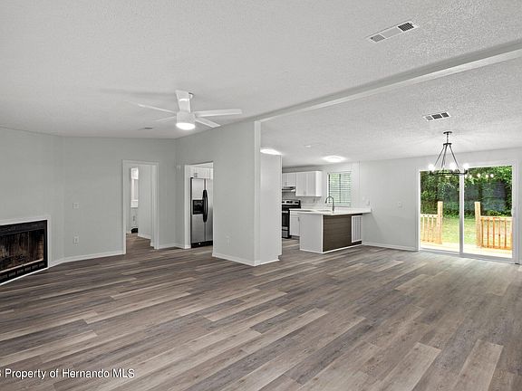 Here is the home you do not want to miss out on! Come on in and enjoy your newly redesigned, freshly remodeled, incredible home (With new 2023 Roof, 2023 A/C) Tucked away in beautiful Brooksville Florida, On 1.50 Acres zoned agricultural. Your home boasts a split floor plan, with an open layout design. Step across the threshold and into your impressive living area boasting a warm and cozy fireplace and large cathedral ceilings, opening the room up and flowing into the kitchen of your dreams!! Your gorgeous kitchen is equipped with new cabinetry with plenty of counter and cabinet space, stainless steel appliances and a very large impressive white quartz countertop with an attached eat in bar that overlooks your inviting living and dining areas, making it perfect for entertaining and interacting with guests. Your large master bedroom suite has cathedral ceilings, large walk-in closet, plus an additional linen closet next to your remodeled master bathroom. On the other side of the home the other 2 bedrooms and remodeled bathroom are just as impressive and are equipped with walk in closets as well. Your home has far too many upgrades to list from your 2023 roof, 2023 A/C, upgraded kitchen, bathrooms, bedrooms, appliances, luxury vinyl plank flooring throughout, hardware, fixtures and so much more!! If the home doesn't take all of your breath away the backyard will. Your backyard is tucked away nicely off of the road, with an impressive 1.50 acres, zoned agricultural with a relaxing scenic park like setting. You have plenty of space for entertaining, relaxing, and room for all of your toys, rv, atv, boat, camper, and more. You do not want to miss out on this home, so schedule a private showing today, and get ready to be amazed!