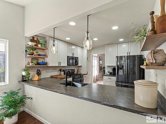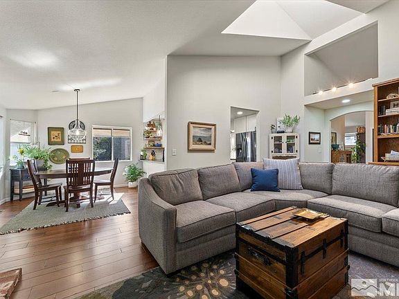 Nestled in the heart of South Reno, this charming 3-bedroom, 2-bathroom home with a bonus den exudes warmth and comfort. Bright and airy, the home boasts vaulted ceilings and abundant natural light from its well-placed windows. Enjoy cozy evenings by the fireplace in the main living room or unwind on the private porch overlooking a serene, secluded backyard. The beautiful kitchen was remodeled in 2019, HVAC changed in 2020, and Water Heater in 2024., The oversized formal living room offers versatile space to personalize. The kitchen is a delight, featuring beautiful updated cabinetry and matching stainless-steel appliances. A custom-built office with cabinetry creates an ideal workspace. The primary bedroom impresses with double closets, a bay window, double sinks, a garden tub, and a separate shower. Additional cabinetry in the hallway and laundry room provides ample storage, with a convenient sink in the laundry area. The large 3-car garage and concrete driveway offer plenty of space for vehicles and storage. The backyard is secluded and low maintenance with no lawn care. Upgraded area in the crawl space is well lit with deck flooring for easy access and additional storage. Conveniently located within walking distance of Huffaker Elementary as well as the bus stop for the middle and High School. At the end of the street is Wheatland Park which has a playground and large oval for kids or pets to play. Bartley Ranch and Anderson Park offer great hiking/walking/biking trails. Walk to the top of Windy Hill to enjoy the views of the city or watch the sunrise. Robert Z. Hawkins outdoor Amphitheater, located in Bartley Ranch, hosts many events, such as theater and music performances in the Summer months. Restaurants and amenities are conveniently located up the street from this home off Lakeside Drive or through Wheatland Park to the shops at Rancharrah. It is hard to beat the location of this home. Don't wait, this is your chance to make it your own!