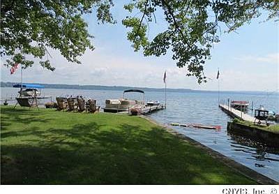 Move-in ready level lakefront cottage on 42' of Owasco Lake. 4 bd 1.5ba, cement sea wall and boat slip, amazing views, new beautiful spacious kitchen, large enclosed porch,1st fl laundry,much storage, all appliances stay, updates include; roof, trex decking, many windows, slider, siding on garage, electric, dock is included and much more. Public water and sewer. Don't miss the opportunity to fulfill your waterfront dream!