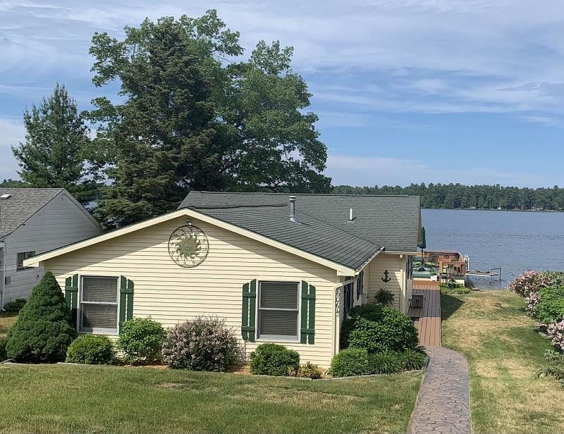 From the moment you get out of your car at the detached 2+ car garage the landscaping welcomes you. Just follow the stamped concrete walkway down towards the lake and this beautiful property. This 3 bedroom one 1/2 bathroom home has been lovingly maintained and is the perfect size for either year round living or a second home. The kitchen, dining, sitting room and living room flow together allowing for open site lines and offer the flexibility to configure furniture in a manner that works for your personal needs. Floor coverings include honey toned engineered hardwood floors in the living space, high end linoleum the bathrooms, entrance and laundry and carpet in the bedrooms. There is a deck that wraps around the south side of the house to the lake side where it opens to a larger space with plenty of room to relax and enjoy. A Boat house is located at waterside and provides approximately 250 sq feet of storage of all your lake toys. The roof is a concrete pad with a wrap around seating and jacuzzi tub. A dock and boat hoist are included in the sale. This home is pristine and ready for you to unpack and just start enjoying all the beauty that Van Etten Lake has to offer.