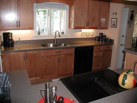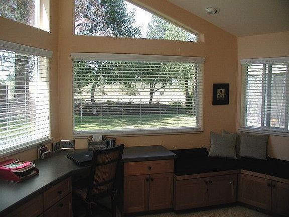 Close to town on 3 acres with 1.5 irrigation on Tekampe. The home is updated with new kitchen , baths, vinyl windows, trim and doors. Kitchen & baths corian counters. Vaulted living with gas fireplace, built in entertainment center for a cozy setting. Light and bright built in office desk area. Easy care landscaped yard with decks pond, green house. Hot tub and gazebo by the pond. Additional building of 864 sqft with finished office and shop great place to work from home.