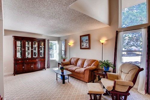 Well maintained home in an established quiet neighborhood with awesome outdoor living space and 3 large living areas for guests and family to enjoy. Cooks delight kitchen has hardwood flooring, includes all the appliances, pantry and newly remodeled lighting fixtures. The breakfast nook is perfect for casual family meals and adjoins the family room. The spacious family room includes vaulted ceilings, a wood burning fireplace and walks out the concrete patio. The formal living room is perfect for greeting guests featuring vaulted ceilings and adjoins the formal dining room- this floor plan is ideal for entertaining. The outdoor living space includes a new TREX deck that is accessed off the dining room and wraps around to adjoin the concrete and brick patio- great for relaxing in solitude or cooking out on the gas line grill and entertaining. The master bedroom is perfect for relaxing at the end of a long day with a large sitting area, spacious walk in closet and 4pc bath. Also on the upper level is another 3 large bedrooms and hall full bath. The brand new carpet just installed in the house is a plus. Lower level includes a recreation room, a bath and a non- conforming bedroom or study. Mature trees, shrubs, plenty of grass and fenced back yard complement this park like setting large lot. An extra concrete pad next to the driveway is great for RV storage. This location provides easy access to I-25, all military bases and the areas best shopping, restaurants and entertainment.