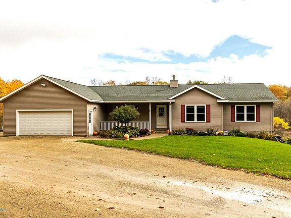 Updated ranch style home located on 35 wooded acres with spring fed pond. Kitchen has been upgraded with granite countertops and black appliances. The home has all new windows, hardwood floors, new carpet and fresh paint. There are multiple outbuildings including a 30x52 pole barn and 16x35 shop. This property is very private, located at the end of a cul-de-sac and has panoramic views.