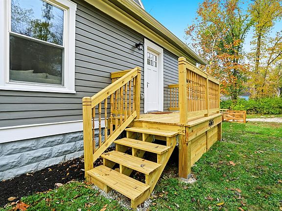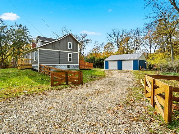 Welcome to 6065 Salem Rd, a beautifully renovated three-bedroom, two-bath bungalow on a quiet, tree-lined lane. Step onto the new front deck and into a sunlit living room with wide-plank floors, recessed lighting, and a painted-brick fireplace. The kitchen features shaker cabinetry, butcher-block counters, subway tile, and new stainless-steel appliances, including a French-door refrigerator. A stylish main-level bath serves two bedrooms; upstairs, a vaulted primary retreat boasts a double-vanity bath and a large walk-in shower. The waterproofed basement provides dry storage, laundry space, and room for hobbies. Outdoors, entertain on the back deck overlooking a fully fenced, park-like yard with a fire pit. A detached two-car garage/workshop with a metal roof offers abundant storage and hobby space, plus easy off-street parking. Fresh, neutral finishes, new HVAC, and thoughtful updates mean you can move right in. Come see it today!