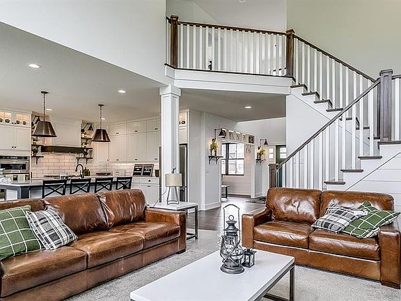 Beautiful open concept modern farmhouse floor plan w/1st floor master suite & 2 story great room w/gas fireplace. Quartz counter tops, stained beams, open shelving, full hieght cabinets and barn doors make this home have a custom farmhouse feel. The home also features lockers & 3.5 garage. Home features premium quality studs, osb & subfloor & 1/2" closed cell spray foam.