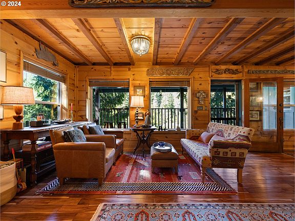 Enjoy this Mt. Hood craftsman style home nestled above the Sandy River on over an acre of land and 210 feet of river frontage. This private charming oasis features a list of outstanding features for full time, investment or second home living. If you love wood you’ll love the interior which features wood beamed ceilings, wood floors and walls throughout the main level. Cozy up on cool nights and warm your toes with the heat of your Vermont Casting wood stove. Open floor plan with living room and dining area plus built in book cases and lots of windows. Off the living room is a covered deck over looking the Sandy River to enjoy eagles, ducks and blue heron flying by. Across the river is the Barlow Trail County Park Greenbelt! No houses, just forest for your views. The primary bedroom is on the main level with it’s own bathroom complete with free standing tub, walk in tiled shower and skylight. There are two bedrooms upstairs One has it’s own bathroom plus a walk in closet. The third bedroom features vaulted ceilings. An open loft area is at the top of the stairs too. A circular driveway takes you to a huge grass lawn. The two car garage has a 550 sq. ft. bonus room above. It’s perfect for a remote working office, hobby room, or kids play room with built in bunk beds. A mini-split heats the area and an outside deck is perfect for enjoying a good book on a summer day. There’s also an 18 X 20 workshop. It has Tons of room for home projects. The well house is just adjacent to the workshop. A Generac generator is included too. For the gardener, a green house and raised beds make it easy for home growing your vegis. Many berry bushes and fruit trees on the property too! The yard is perfect for games of corn hole, croquet and volleyball. Sit under the gazebo and enjoy an out door barbecue. There’s plenty of room to spread out at this quiet dead end country road. Recreational opportunities abound from skiing, mountain biking, hiking, fishing!