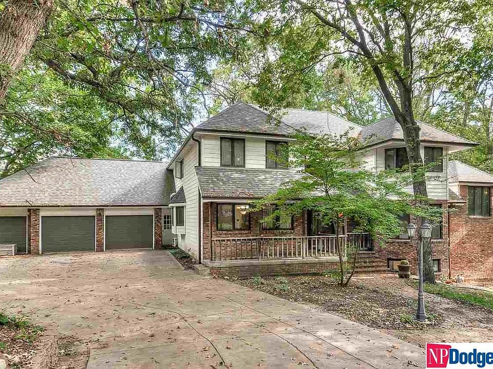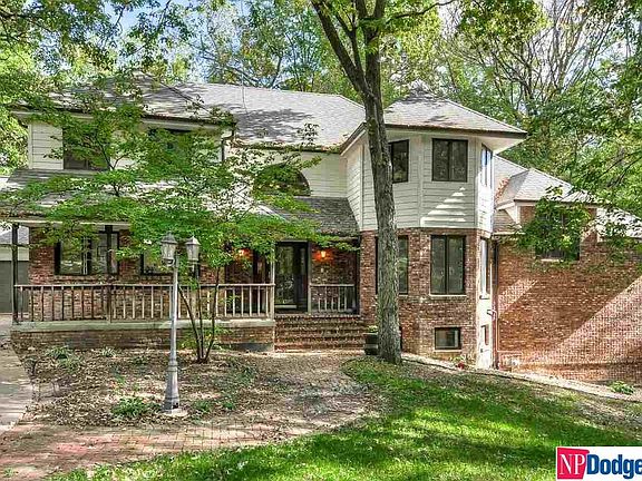 Hard to find 1.5 story nestled in the trees and woods, one of Omaha's premier neighborhoods Country Club Oaks adjacent to prestigious Omaha Country Club. Over 6200 sq/ft of living space and set back on a private ½ acre of lush forest & gardens. Chef's kitchen with stainless appliances, large pantry, and double oven. Home features beautiful wood floors through out main living areas - private den, living room with vaulted ceilings, large office, and formal dining room. Primary bed just off main living area with en suite featuring WP bath, walk in shower and double vanities & closets. Additional 3 beds and bathroom upstairs, including a private deck/balcony perfect for enjoying the outdoors. Basement features a wet bar, bonus room - used as non-conforming bed, bathroom with sauna, shop or exercise room and the cherry on top is your own personal racquet/basketball court. Located minutes from I-680/72nd Street. Call now for your private showing of this amazing one-of-a-kind home!