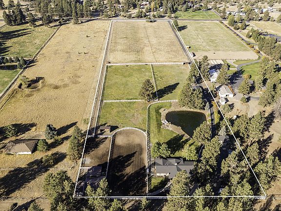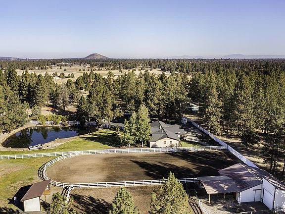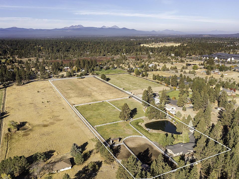Peaceful and private 10.76 acre estate just minutes from downtown Bend. Turn key estate with horse set-up. Home has new quartz counters and appliances. Also new washer/dryer. Single level with 2 primary suites. His and hers walk in closets. DIAL shows 3 bedrooms. 3rd bedroom has been converted to a dedicated office. Custom doors and incredible wood trim and built ins. 8.75 of Arnold irrigation,36x36 barn with heated tack room, heated wash, built-in cabinets/feed, 3 stalls, matted, each with 12x24 outside paddocks, auto waterers, also 20x15 covered shavings/hay storage with garage door, 180x80 riding arena with footing, wheel line, plus underground irrigation. 1,152 sq ft detached garage / shop. Large 1/4 acre landscaped, pond, great mountain views, includes detached studio. A great opportunity to be in the country yet really close to all the amenities that Bend has to offer. Only minutes away from shopping, schools, & medical facilities. Close to Alpenglow Park and BLM.