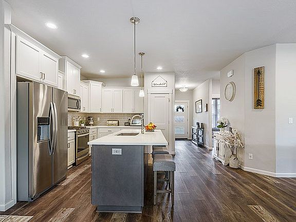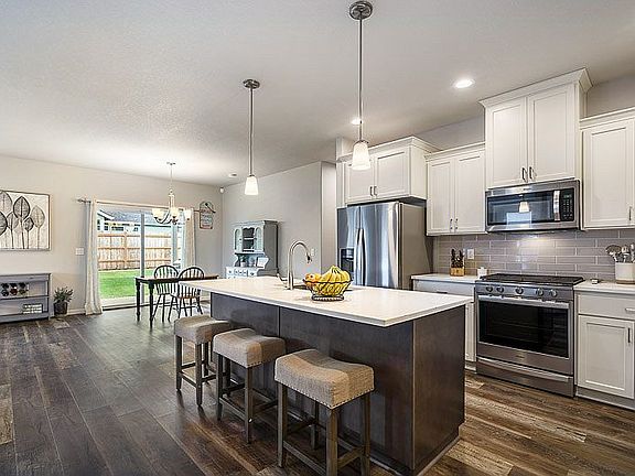 Accepted offer with contingencies. Built in 2018, this 3-bedroom, 2-bath has an open flow floor plan encompassing the kitchen, family room and dining nook. The kitchen has an eat-in island, stainless appliances, a large pantry, quartz counters and pendant lighting. Luxury vinyl plank flooring extends from the kitchen to the dining area with chandelier and family room with a gas fireplace and ceiling fan. The master bedroom has a walk-in closet and ensuite bath with dual vanities, quartz counters and shower with a seat. Two additional bedrooms are entered from the hallway and there is another bath with a shower/tub combination. A separate laundry room has plenty of cabinets. Nine-foot high ceilings add a sense of spaciousness and central air and heat maintain indoor comfort throughout the year. A sliding door from the dining nook opens to the expansive cedar-fenced backyard with a covered patio, raised flowerbeds, in-ground sprinklers and plenty of lawn. There is a three-car attached garage and room for RV parking.