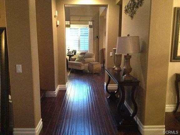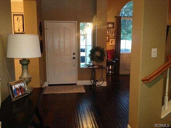 This house is for the pickiest buyer!!! Absolutely gorgeous house with tons of upgrades in the prestigious city of Eastvale with award winning schools, walking distance to Orchard Park!!! Close to freeways and shopping centers. Actually 4 Bedrooms and 3 Bathrooms ( title shows 3 bedrooms). Vaulted ceiling at the entry way. Wooden floors throughout the house with upgraded baseboards. Crown moulding, built-in entertainment center and upgraded fire place. Plantations shutters with custom made window treatments. Kitchen with a central island has wooden floors with upgraded cabinets and hardware knobs that follows to a butler's pantry. Built-in cabinets in the dining room and wainscoting in living room with hidden door for storage under the stairs. Tandem 3-car garage with epoxy floor. The spacious backyard with white vinyl fence has a concrete patio with planter walls throughout, pillars, BBQ island and a fountain. On your side yard you have a garden. Special assessments only $2,206.Don't be shy, we'll consider all offers!