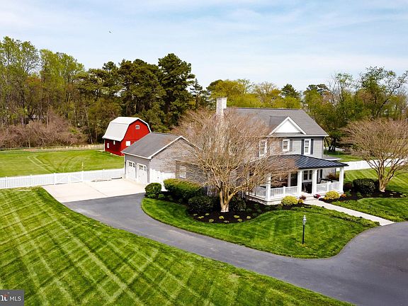 DREAM RETREAT! Situated on 2.83 acres, this beautifully updated 4-bedroom, 3-bath home combines classic charm with modern comforts. Inside, you’ll find a spacious layout with one bedroom featuring a private ensuite with renovated bathroom on the main level. An additional full bath, laundry room and space for a home office are also conveniently located on the first floor. Upstairs, you'll discover three more bedrooms and a third bathroom, offering plenty of space for everyone. All bathrooms have been tastefully updated. Crown molding and chair rail accents add sophistication to the first floor living spaces, and refinished hardwood floors run throughout. The heart of the home is a chef’s dream kitchen, fully renovated in 2016 with a custom baking center, Bosch double ovens, and Bosch induction cooktop. Updated windows and doors in the kitchen, great room, and breakfast area flood the space with natural light. Relax by the cozy fireplace in the great room, complete with a natural gas insert. Additional upgrades include a new natural gas heating system, a replaced hot water heater, and a professionally encapsulated basement with a commercial-grade dehumidifier. The entire interior, including the 2-car garage, has been freshly painted. Step outside to enjoy a large front porch, an irrigation system, a paver walkway, and a beautifully designed patio area with both paver and concrete surfaces, a built-in firepit, and a hot tub. Gas and electric hookups are already in place for a future outdoor kitchen ideal for entertainment. A standout feature is the detached 20’x32’ two-story barn with a finished front room (drywalled, insulated, painted, and with electric service), windows, a propane wall heater ready for connection, and a 20’x20’ concrete pad perfect making this space perfect for a workshop or studio. Love golf? You're just a short walk from the Southern Delaware Golf Club. Craving great food and drinks? The Big Oyster Brewery Taproom and Kitchen are right across the street too! Conveniently situated near the Bay Health Sussex Campus hospital, downtown Milford, and Coastal Highway, this property offers easy access to the pristine beaches of Lewes and Rehoboth Beach, as well as the Cape May-Lewes ferry, making it an ideal location. Best of all—NO HOA! Don’t miss your chance to own this one-of-a-kind property that perfectly blends comfort, convenience, and coastal charm. Schedule your showing today!