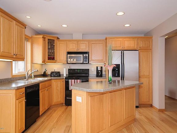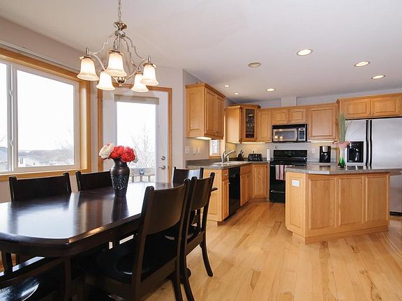 Walk-out 2 story in Summit Pointe. All 3 levels finished. 4 bedrooms, 4 baths, master BR has vaulted ceilings, walk-in closet, ceramic tile bath on upper level with double sinks, whirlpool tub & shower. Gorgeous open kitchen with hardwood floors & center island, paneled doors, main floor laundry and office. Lower level finished & walks out to flat fenced backyard. 3 car garage.
