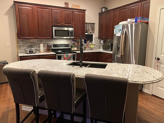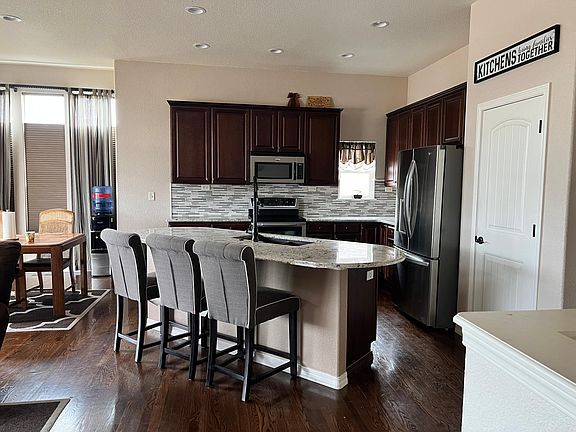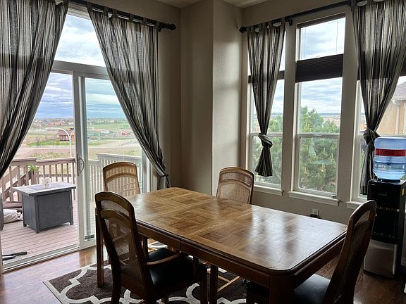 Beautiful 4 Bedroom / 3 Full Bath Ranch in the desirable Cumbre Vista Neighborhood! This home offers awesome views of Pikes Peak from the living room, bedroom, rec room, and dining area with additional views of cottonwood creek area. As you enter into this home you will find an open floor plan that provides a large Living room, Kitchen and Dining Room layout. The spacious Master Bedroom is just off the Living Room and also includes a 5 piece Master Bathroom and a large walk-in closet with custom shelving. There is a second Bedroom on the main floor as well as a designated Home Office or flexible space. As you go downstairs you will find two additional Bedrooms and a large Family Room that is at ground level so you can walk out your patio doors to enjoy your fully fenced in yard. Relax and enjoy the privacy in your yard or up on the deck where you can enjoy gorgeous sunsets over the mountains! Out back you will find a large shed for ample storage in addition to your large 3 car garage which features workspace along with foldout workbenches for additional work room. Electric and gas hookups in the laundry room. Home is in the award winning D20 school district. Come take a look! Tenant is responsible for their own utilities. No Smoking. Pets will be considered on a case by case basis by the owner. There is a $25 per pet/mo fee as well as a fully refundable pet damage deposit of $350 and a pet cleaning fee of $300.