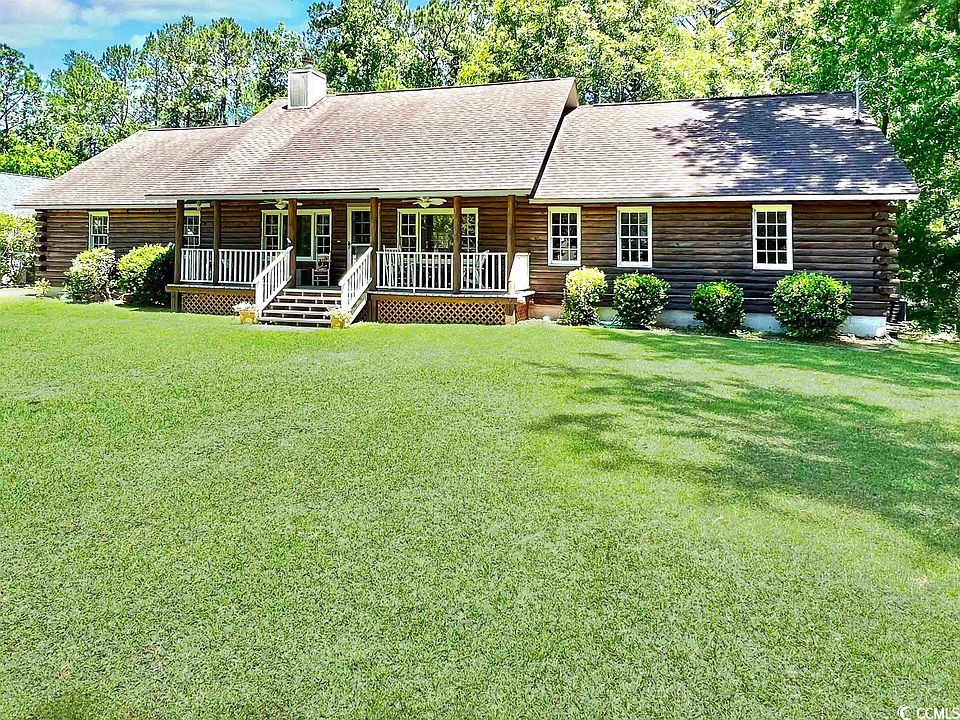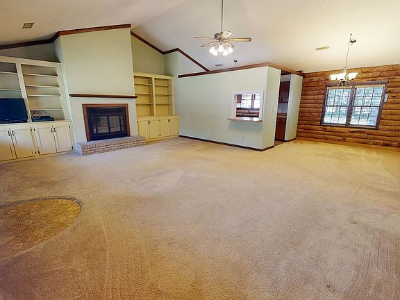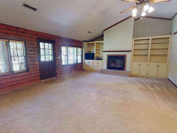 Introducing this distinctive authentic log cabin style 3 bedroom 2 bath home located in the popular Jonathan Estates community on an attractive .7 acre lot with no HOA dues. This delightful home showcases vaulted ceilings, an abundance of natural lighting, a pleasant front porch, laminated wood, tile, & carpet flooring, an inviting formal dining room area, a tranquil office, and a comfortable living room with built-ins & a cozy fireplace. The kitchen is equipped with a black on black appliance package, smooth flat top range, built-in microwave, dishwasher, refrigerator, and includes ample counter and cabinet space. The large master bedroom features a ceiling fan, his & hers bi-fold door closets, private access to the stunning master bath offering a vanity with a single sink, comfort station, and a deluxe step-in shower. This sensational home is finished with two additional bedrooms, a full guest full bath, a laundry room, a relaxing back porch, fenced side & back yard, storage shed, and a two car attached side load garage.