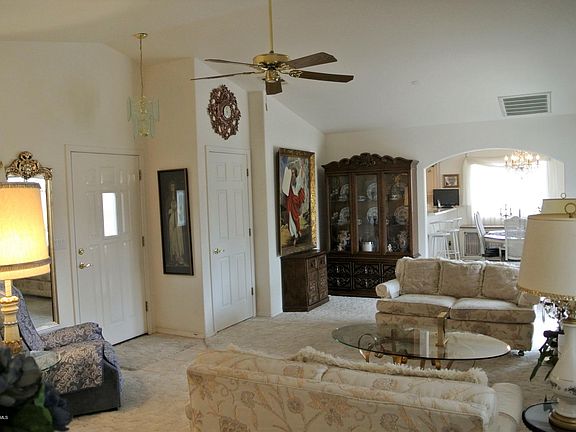 This home is cute & cozy, has an open floor plan, level driveway & great location! Living room w/vaulted ceilings & fireplace. Kitchen opens to the large dining area/breakfast bar. Laundry room- washer/dryer included. Spacious master bedroom has slider to patio, walk-in closet & large shower! Guest bedroom close to the full bath, linen closet. Mostly fenced back yard, covered patio, flagstone accents and mountain views! 2 car attached garage! Furnace, AC & water heater approx 3 years old. New roof being installed in the very near future! This one owner home has been well loved but does need some updating. Seller will consider a credit to buyer for flooring or closing costs, with an acceptable offer! Could be really nice with your touches!