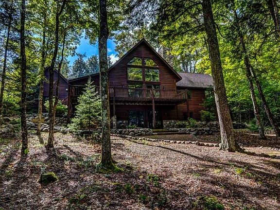 LAND O' LAKES RETREAT- Spectacular Forest Lake Dan Benson custom original boasts 3 bedrooms, 3 baths all nestled on over 2.5 acres of wooded landscape. Resting on over 200' of level frontage on clear, sand bottom, 60' deep Forest Lake, makes recreation and relaxation a must! A wall of lakeview windows, stone fireplace, vaulted ceilings, and hardwood floors makes the perfect great room to entertain. Kitchen has maple cabinetry, island snack bar, and an attached screened in sunroom for outdoor dining. A spacious first floor master suite with walk in closet and his and her sinks lends itself to stunning lakeviews. The walk out finished lower level has 2 large bedrooms, a full bath, family room with wet bar and additional unfinished storage. With Kohler fixtures, Hunter Douglass window coverings, custom Dan Benson built ins, decking, landscaping and a 3 car attached garage for more storage, this home has it all for your Northwoods retreat!