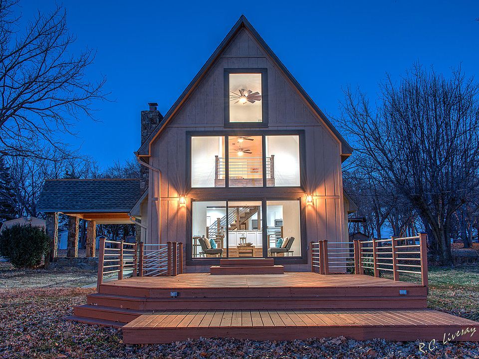 Modern rustic lake home with open living design with 2300+ sq ft 3 bed, 2 bath. Enjoy that vacation lakeside feel year round! Completely renovated with granite counter tops, soft close cabinetry, stainless steel appliances, hardwood floors and premium carpet in bedrooms. Exterior and internal work include new architectural shingle roof, all new energy efficient windows and sliding doors, new exterior door, new plumbing with new hot water tank, updated electricity. This house is truly turnkey move in ready. Enjoy the lake from upper and lower decks with views of sunsets and Sailboat Bridge. Gentle slope to private dock. Located in Grove on Wolf Creek, angler's paradise. Agent owned . Only 342,000 call for your appointment today.
