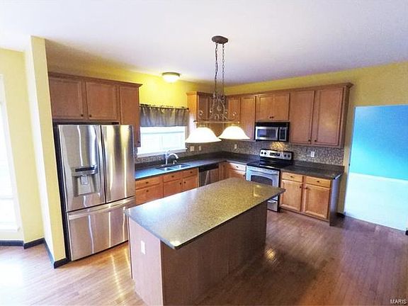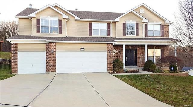 A Gorgeous 2 story 4 bedroom, 3 bath home in Seckman Schools! This home has so much to offer from Hardwood Floors on the Main Level & an Office/Den at Entry foyer to the Cozy family room with a Wood Burning Fireplace perfect for this season. The kitchen Features tons of Cabinetry, Large Pantry, Built-in Desk, Solid Surface Counters and Stainless Steel Appliances to Stay. There is a formal dining room that would be perfect for a quiet breakfast room nook. Upstairs you will find 4 very generous size bedrooms & convenient 2nd floor laundry room along with a HUGE Bonus area. The Master Suite is just Beautiful with a Huge Walk-in Closet room along with the Master Suite Lux Bath, dual sinks separate tub/ shower. Other features of this home are a very large mud room off the 3 car Over-sized Garage, a walkout basement, the back Patio is a Stamped/Stained concrete to accent the outdoor Entertaining Space. Back is Fully Fenced with an AMAZING VIEW! This Relocation home is Priced to sell~