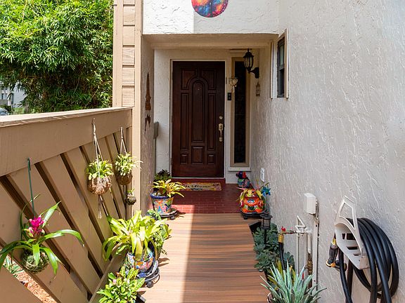 Walk up the private entry for a warm welcome to this custom, master-crafted end unit retreat. Stunning features include wood ceiling beams, cedar paneling & Ming Dynasty reclaimed wood floors. Eat-in chef's kitchen boasts a hand-turned custom copper sink, instant boiling water faucet, granite, pantry, & peninsula. The dramatic living area has cathedral ceilings, wood burning fireplace & beautiful lake views. COMPLETE IMPACT WINDOWS/DOORS/GARAGE. Upstairs a split plan features a generous owner's suite with cathedral ceiling, library/office & rare lakeview balcony. 2 additional bedrooms with Jack & Jill bathroom. Impeccably maintained with attention to every detail, this home has a new central vac, A/C 3 yrs, no popcorn, Toto toilets & 2006 roof routinely serviced. On a cul-de-sac & pets ok!
