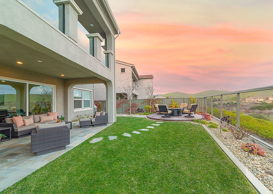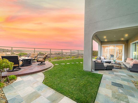 This exquisite home is located in the highly desirable Gale Ranch neighborhood. Throughout the home you’ll find custom designer light fixtures, gleaming hardwood, elegant stone floors and smart home equipped. The sought after downstairs bedroom with full bath is ideal for guests or extended family. The floor plan flows beautifully throughout with an elegant entrance with soaring high ceilings and invites you into the open kitchen/family room combo with fireplace. The expansive gourmet chef’s kitchen is impressive with a gorgeous quartzite island, SS top-of-the-line appliances and built-in wine fridge. Venture upstairs to a spacious bonus room loft and into your luxurious master suite with balcony and stunning views. Relax in your master spa-like bath featuring fabulous marble floors and countertops, dual vanities, freestanding tub, expansive full wall rain shower and double walk-in closets. Open the elaborate sliding door that leads to your CA Room. Entertain with family and friends in this beautifully appointed backyard with built-in patio with a firepit and breathtaking panoramic views! This spectacular home is conveniently located near parks, recreation and within the top-rated San Ramon Valley school district.