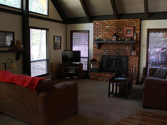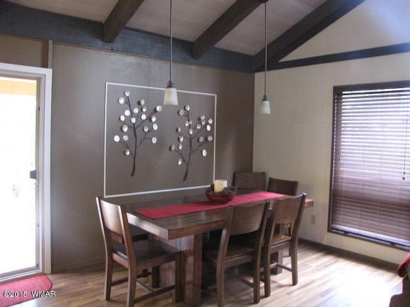 Comfortable mountain cabin in Pinetop Lakes with 3 bedrooms, 2 baths, beautifully remodeled kitchen with large work island, S/S appliances. Gas cooktop in island along with electric range. Remodeled guest bath with shower. Vaulted ceilings with wood beams and brick wood-burning fireplace in great room. Rinnai natural gas heater in great room area. Spacious rear deck for outdoor enjoyment. Fenced back yard. Steps from the Pinetop Lakes rec center for enjoyment of its amenities.