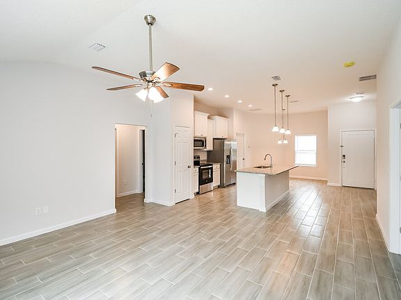 This new construction four-bedroom, two-bathroom Jacksonville, FL rental home is a modern smart home with an attached garage. You'll love the living room's elegant tile flooring, and with sliding glass doors leading outside, there's plenty of natural light. The open layout flows into the kitchen, with pendant lighting illuminating the expansive center island. Other kitchen highlights include a sizable pantry, stainless steel appliances, and all-white cabinetry. Head to the main bedroom suite at the rear of the home when it's time to relax. You'll find two rear-facing windows, a lighted ceiling fan, and an en suite bathroom with a walk-in shower. There's even a walk-in closet for ample storage. Call us to schedule your tour today.