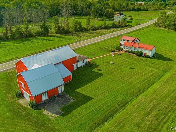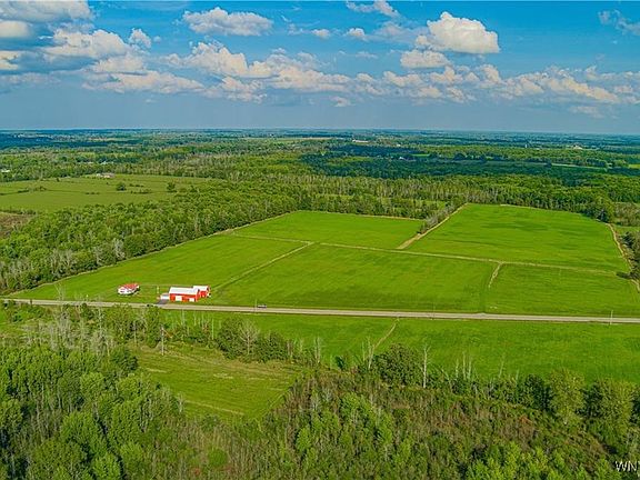 Town of Royalton Fabulous farmhouse with 90 Acres. Detached garage and barn! Akron Schools! 3 bedrooms 1 full bath. Open kitchen, family room and dining room. First floor laundry. Enclosed front porch. Clean dry Basement with a loft for storage and access to the outside. Detached 2 car garage. Metal barn with 1.5 stories. Metal roof on house and barn approx 2015. Furnace and HWT 2024. Septic is newer approx 15 years. Property can be broken into House, barn, detached garage and 40 acres..$350,000.00. 35 acres $225,000.00 and the lot across the street approx 16 acres $99,000.00. See MLS #s B1572172, B1572059, and B1572058.