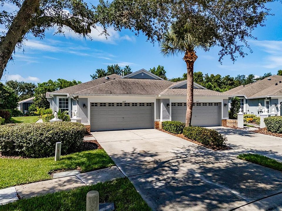 This 3 bed, 2 bath, 2 car garage maintenance free villa is located in the gated Fishhawk Ranch community of Sandhill Place. This home has been tastefully updated and is located on a cul-de-sac. The kitchen is a chef's delight, featuring solid pine cabinetry with soft-close drawers, stylish granite counter tops, custom tiled backsplash that compliments the cabinets, a gas range with a range hood, a stainless steel refrigerator, a wine/beverage cooler, a built-in china cabinet that matches the cabinets and a solar tube light for added natural light. The closet pantry has a hand-made iron filigree door. The kitchen nook is spacious. The living room offers plenty of room featuring a built-in bar area and triple glass sliders that open to the lanai. The primary suite offers a tray ceiling with crown moulding, glass sliders that lead to the lanai and an expansive area that is perfect for sitting, a gym or an office. Your spa-like En-suite boasts marble countertops with dual vanities, a free standing soaking tub, a walk-in shower with dual shower heads, a seating bench and is surrounded by subway tile. The secondary bedrooms are spacious. Freshly painted interior and crown moulding & plantation shutters throughout. The large screened enclosed lanai has plenty of room for entertaining. This villa is situated on a lot that offers privacy. The community private pool is available for the exclusive use of Sandhill Place residents and their guests. Other community amenities include miles of walking trails, Fishhawk Square, Osprey Club, an Aquatic Center and resort-like pools, fitness centers, tennis & basketball courts and a Skate Park. Located just minutes to shopping, dining and some of the top-rated schools in Hillsborough County.