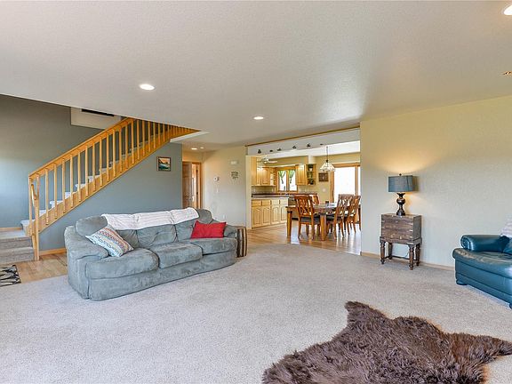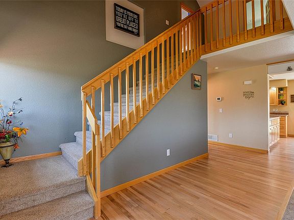 Gorgeous 35.05 acre ranch only 5 min to town! Main floor master + full luxury bath, dbl showerheads, Walkin closet, jetted tub & fireplace. Kitchen has Corian countertops, wood floors, new stainless appliances, surround speakers & living rm windowseat. Walkout bsmt has wet bar w/ granite counters, full fridge & storage in custom built-ins. Mature landscaping w/ spklr sys & views from the huge patio/deck. Pasture space, loafing shed & community trails make for ideal equestrian estate!