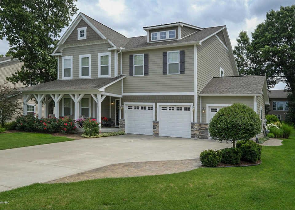 Welcome to 6069 Waters Ridge Ct, a remarkable 3190 sq. ft. home set on .32 acres in beautiful Kalamazoo, Michigan on a quiet cul-de-sac. This 4 bedroom, 2.5 bath family home with neutral flooring, paint and white trim throughout, is just what you've been looking for. Charming curb appeal, including a wrap-around porch, cement board siding, metal roofing details, stone and 3 car attached garage, draw you right in. The main level boasts of a convenient mud room that includes a built in bench, striking study, gorgeous gas fireplace in the great room, and a gourmet kitchen w/stainless steel appliances, granite, hardwood floors and dual ovens. Second-floor laundry and additional living space, add convenience and functionality. Escape to the master suite that contains a large soaker tub, ceramic tile bathroom, granite counters w/under-mount sink and large walk in closet. This home is located in the highly sought after Applegate neighborhood that is adjacent to the Al Sabo Land Preserve
