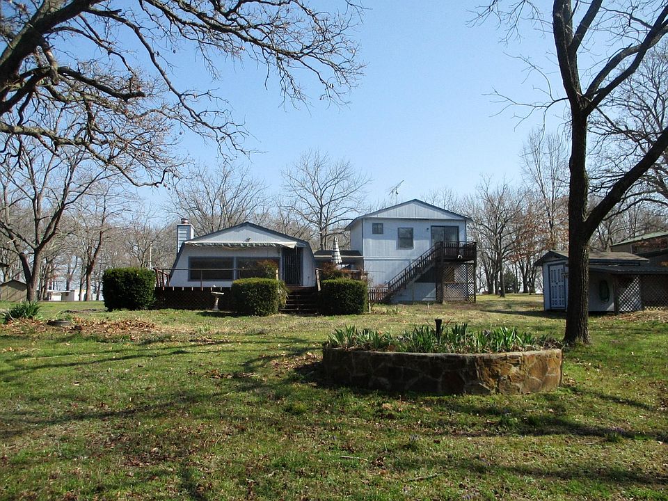 Bring your family and enjoy this nice lakefront property on the weekends or year round. Walk into an open floor plan that is perfect for entertaining. Guest quarters above garage with full bathroom. Large back deck for barbecue's and relaxation! Workshop attached to garage is perfect for all your hobbies and extras with built in shelves. Additional parking w/the two car attached carport. Quiet area on Grand Lake with boat dock & swim dock. Needs some updating but for $150k you won't find anything else in Grove, OK on Grand Lake!