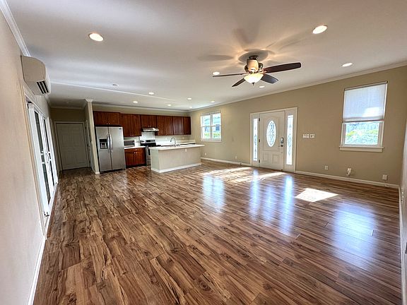 Kailua Town- Spacious 3-bed 2-bath single family home, with 2 car garage. Tucked away on a peaceful flag lot, this beautiful single-family home offers privacy, comfort, and style in the heart of Kailua. A fully fenced yard surrounds the property, set back from the street for added tranquility. This beautiful home features extra high ceilings, crown molding, split ACs, ceiling fans, acacia wood laminate floors, and a stamped cement patio perfect for entertaining. A thoughtful floor plan separates the ensuite master bedroom & other bedrooms with a great room, which flows to the sun-drenched patio. Abundant natural light fills the space throughout the day. Additional highlights include a spacious two-car garage with ample storage, driveway parking, and an in-home washer and dryer. Excellent central location, steps to Kailua town's vibrant restaurants, fitness, shopping, & public transportation. Only a stroll away from world famous Kailua Beach. Available July 1st. Rental Details: -Home is rented UNFURNISHED -Tenant responsible for all utilities -Landscaping service included -NO SMOKING -Pets allowed with owner approval and pet deposit -12-month lease Available July 1st
